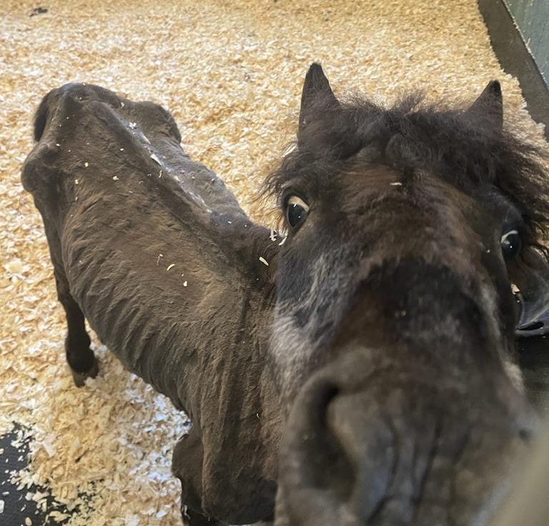 A miniature Shetland pony who was so thin that you could see his spine, ribs and hips is now transformed in Redwings’ care. Twenty-six-year-old Charlie to the charity in August 2022 after being rescued in an emaciated state. His owner has been prosecuted by the RSPCA.