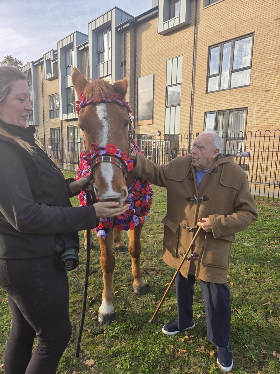 A care home in Huntingdon welcomed a special guest to mark Remembrance Day this year when Chester the horse paid residents a visit.