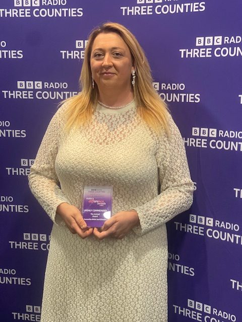 Samantha and Chester were highly commended in the animal category at the 2025 BBC 3 Counties Radio Make A Difference Awards for their charity work for Keech Hospice Care.