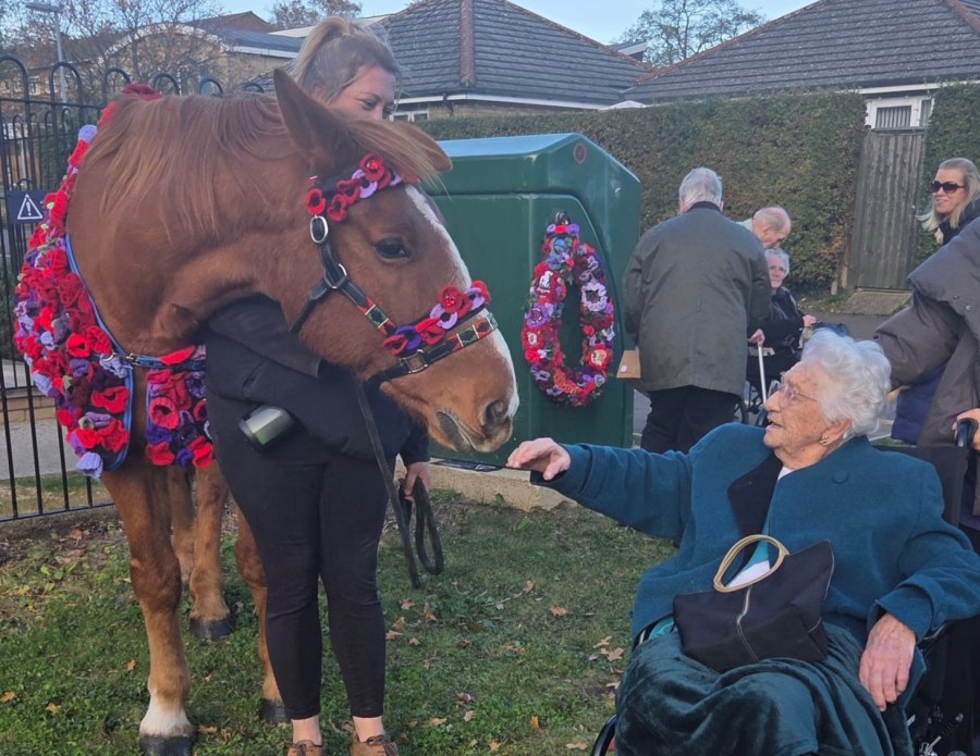 A care home in Huntingdon welcomed a special guest to mark Remembrance Day this year when Chester the horse paid residents a visit.