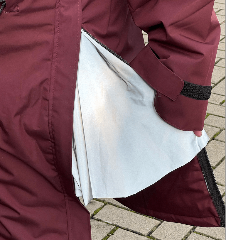 I’ve been wearing the fleece-lined Reincoat Pro in burgundy, and the lining is beautifully soft — almost carpet-like — and feels luxurious every time I put it on. Even when temperatures dipped below zero, I stayed toasty warm.