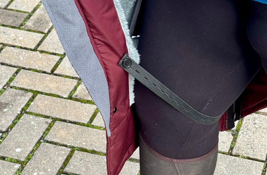 The elasticated thigh straps are another thoughtful feature. They keep the coat securely in place and prevent flapping on windy hilltops — and trust me, I’ve tested them on some seriously blustery winter days.