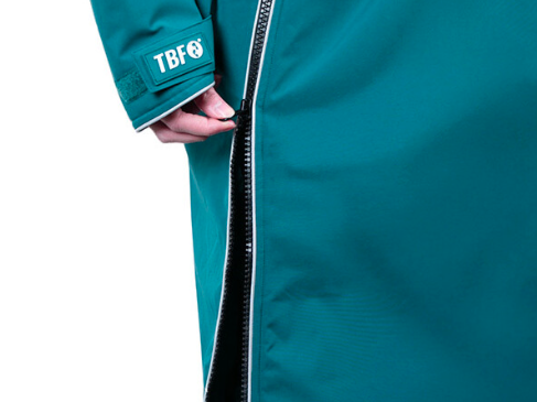 Its manufacturers describe it as an extra-long, oversized robe that provides ample coverage over your riding wear and even doubles as a convenient changing robe – hence that roomy fit.